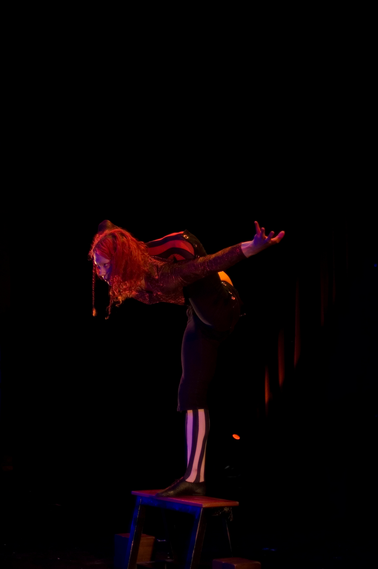 modern and classical frontbending styles. Currently based in the toxic icefalls of the South San Francisco Bay Area, Fleeky's teachers include Master coach Xia kemin, National Treasure of Mongolia, contortionist Serchma Byambaa and Acrobatic Visionary Dominik (The Swiss) Wyss. A former certified doppleganger technician for the mormon church, and a one time holder of the great key of Utah; Fleeky is also a co-founder of Circus Automatic and currently serves as artistic director to his own circus school, 915 Cayuga.